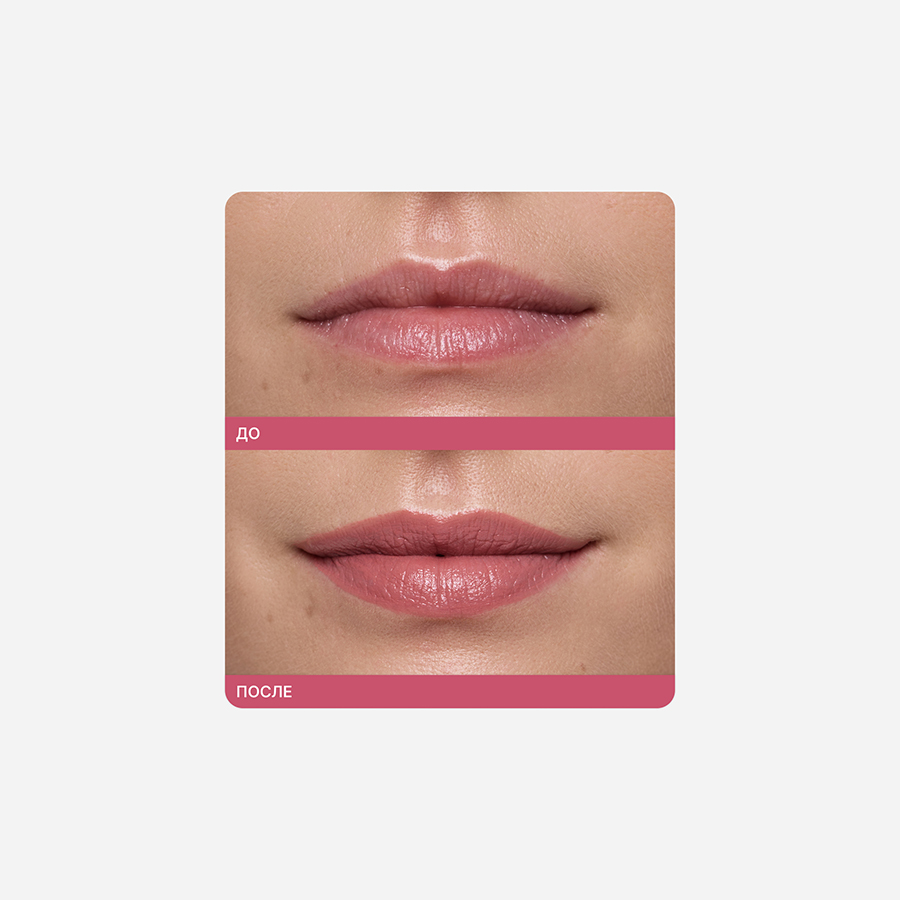 Масло жожоба и витамин Е в составе обеспечивают губам необходимый уход: увлажняют, питают и защищают от сухости. Помада комфортно и равномерно наносится, приятно ощущается на губах, не западает в трещинки.