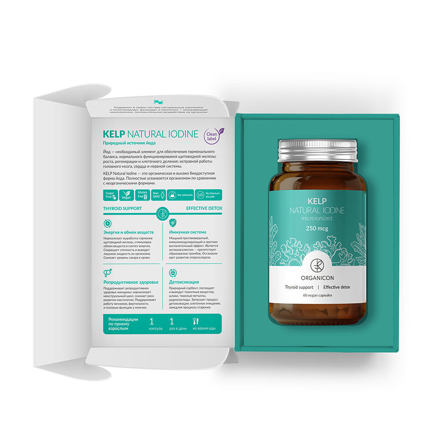 Природная форма йода 250 мкг | 166% от АУП*